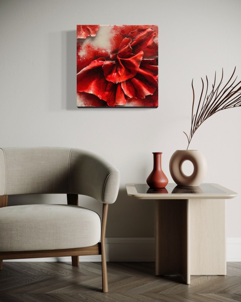 Durch Experimentieren und Ausprobieren habe ich eine ganz eigene Technik für die Strukturpaste entwickelt – sie verleiht den Werken eine beeindruckende dreidimensionale Harmonie. In Kombination mit den brillanten Farben von Aquarylic entsteht eine einzigartige Wirkung, während das Resin den Bildern einen wunderschönen Glanz und Tiefeneffekt gibt.