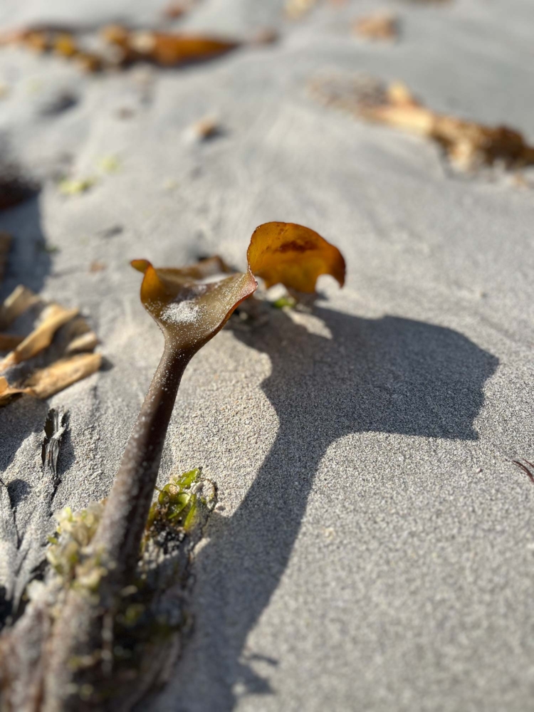Der Strand war ein wunderschöner Ort. Leichter Wellengang, fester Sand unter den Füßen, wir gingen eine Weile am Wasser entlang. Dabei entdeckten wir viele kleine Details, die zum Verweilen einluden. Muscheln, angeschwemmtes Strandgut, Algen in interessanten Formen. Ich machte einige Fotos, ließ mich vom Licht und den Formen inspirieren. Etwas weiter im Wasser schwammen sogar zwei kleine Seehunde.
