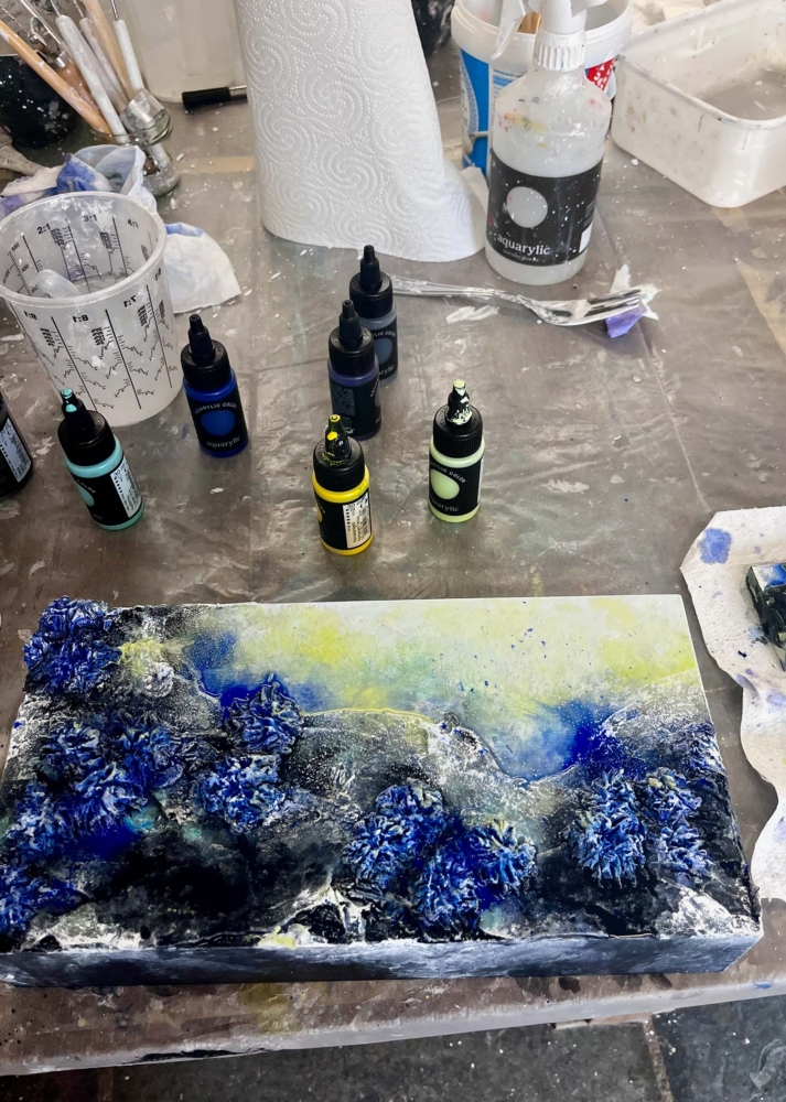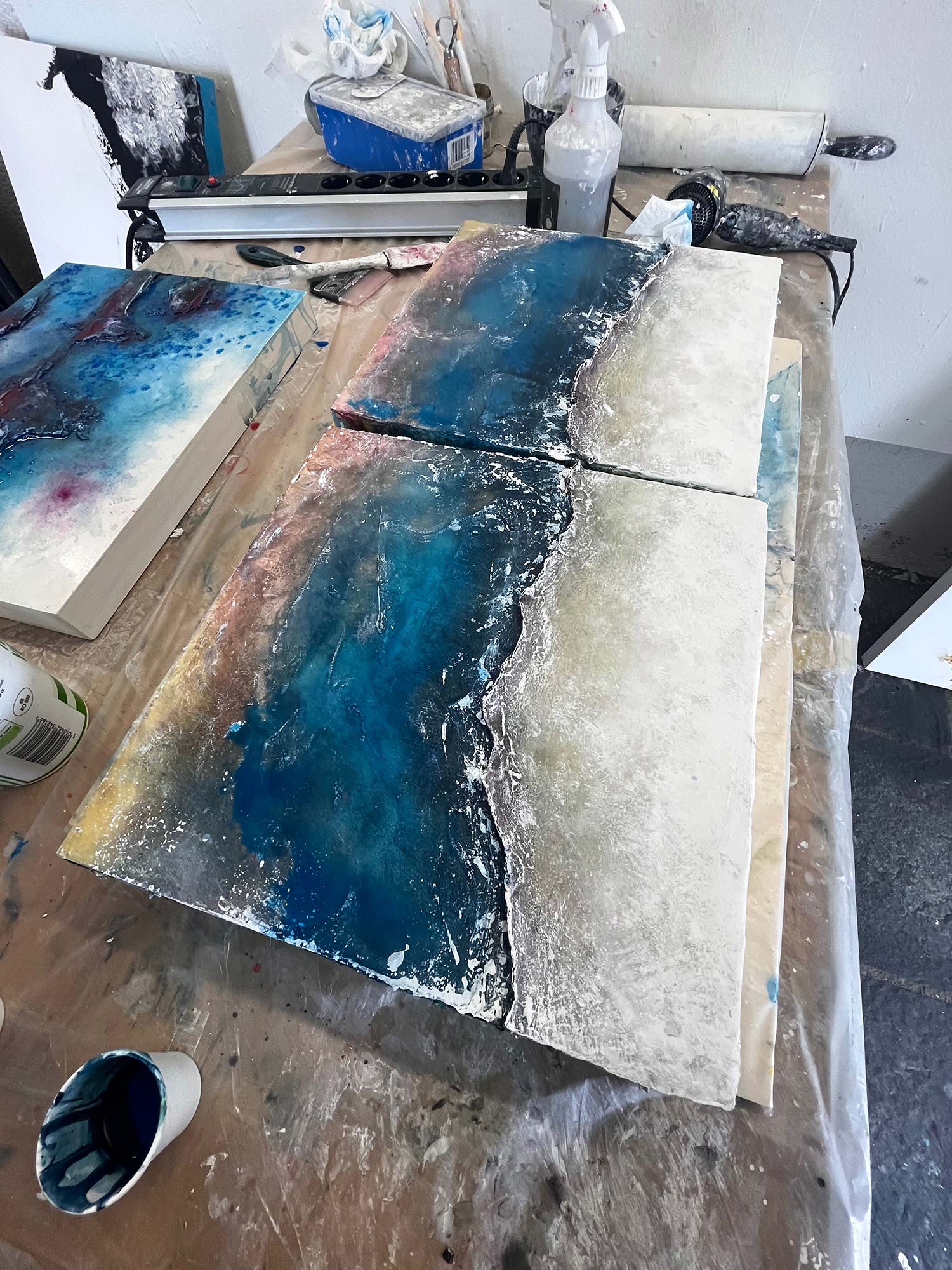 Rückblickend spüre ich, dass sich in diesen Tagen etwas geöffnet hat. Meine Arbeiten entwickeln sich weiter, mit Ruhe und Klarheit. Der Prozess fühlt sich stimmig an. Ich habe das Gefühl, auf einem guten Weg zu sein – sowohl mit meiner Kunst als auch mit der Art, wie ich hier arbeite.