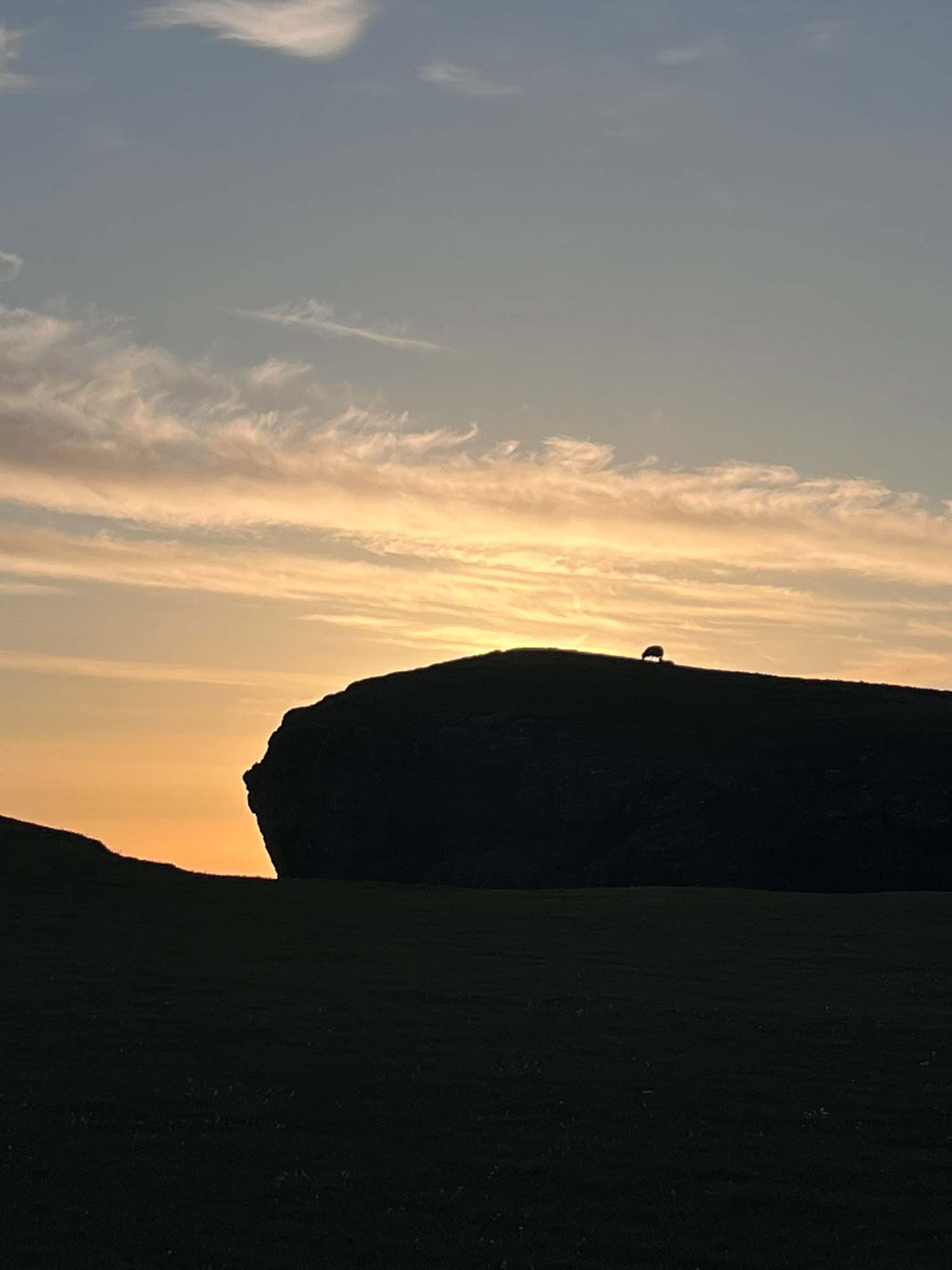 Auf dem Rückweg haben wir mitten auf einer Wiese mit Schafen auf einmal eine Meeresbrandung gehört und konnte die Herkunft nicht einordnen. Es hat sich herausgestellt, dass das Meer einen langen unterirdischen Tunnel ins Ufer gegraben hat, auf dem wir zusammen mit ein paar Dutzend Schafen ahnungslos herumspaziert sind.