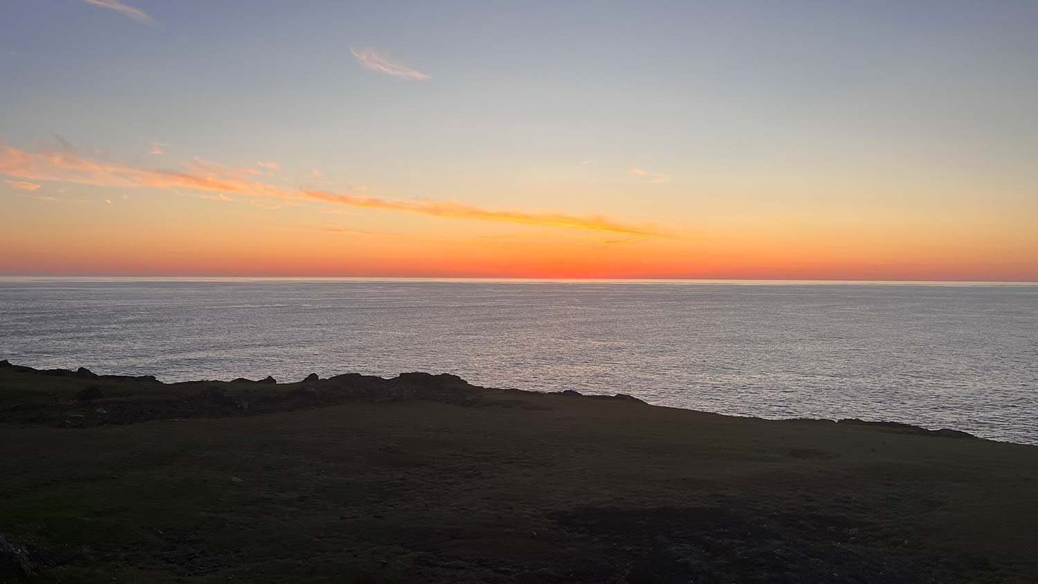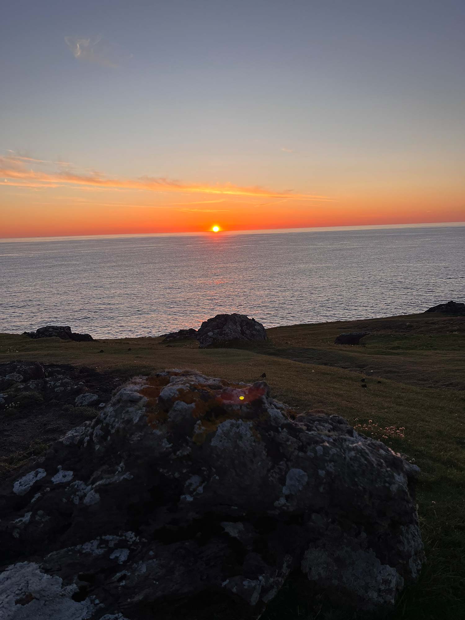 Was ich nicht vergessen werde, ist ein grandioser Sonnenuntergang. Erst gegen 23 Uhr ist die Sonne langsam am Horizont verschwunden. Abgetaucht direkt in den Atlantik und den Unterschied zwischen Himmel und Wasser aufgelöst in eine unendliche Weite. Wir zwei haben eine lange Zeit nichts gesagt und einfach nur gedankenverloren in die Weite geschaut.